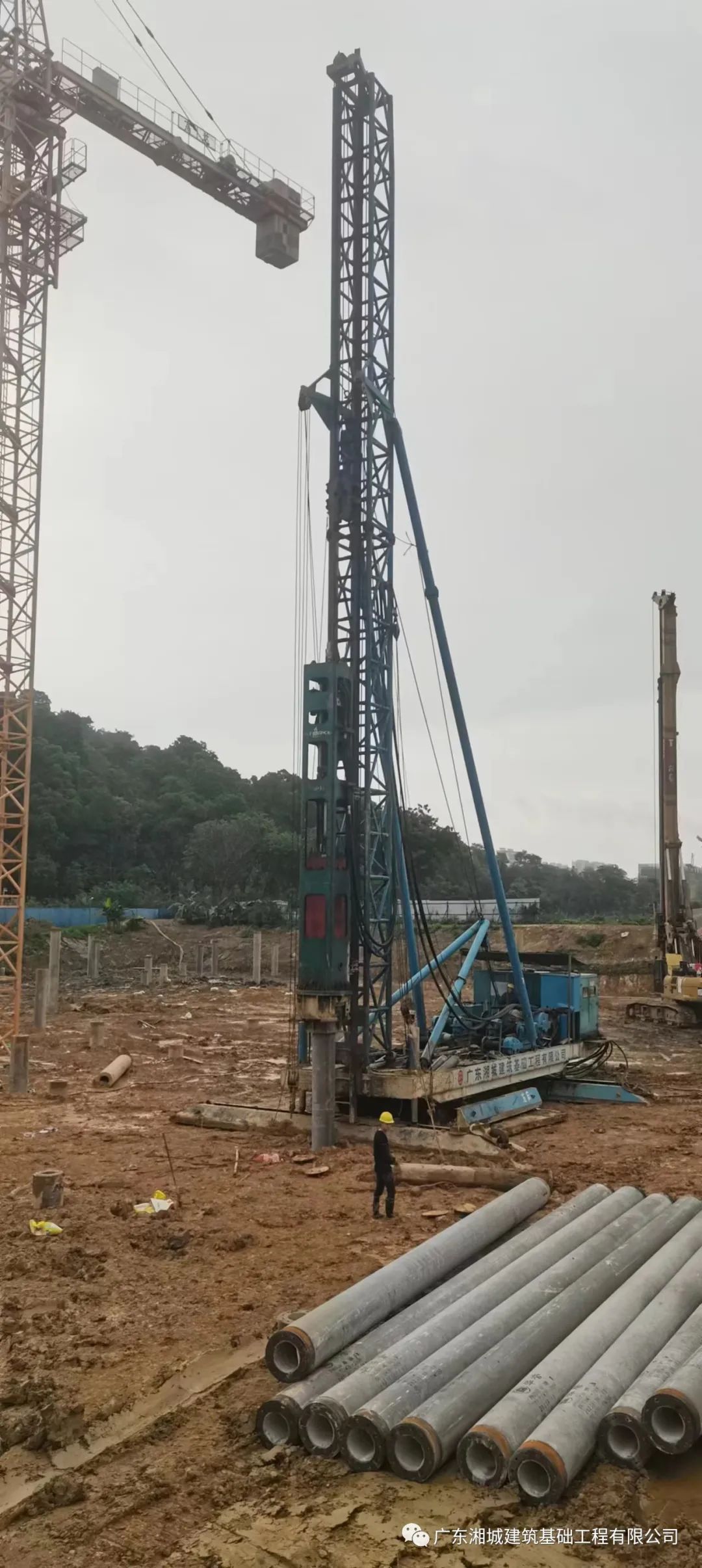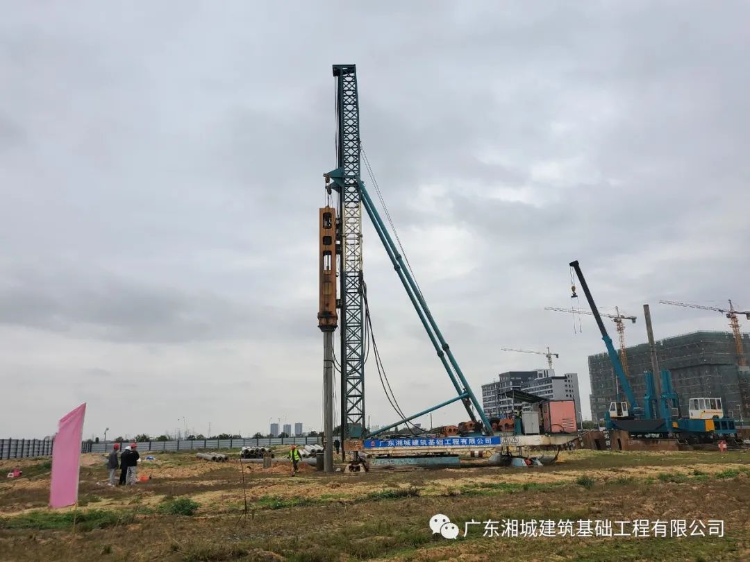 項目位于江門市江海區(qū),建設(shè)用地面積約45畝,配套建筑面積約17800平方米。主要建設(shè)包括:土建工程、電氣工程、給排水工程、暖通工程、抗震支架、區(qū)內(nèi)園建工程、園林綠化工程、其它配套工程等。項目樁基礎(chǔ)建設(shè)由我司投入4臺環(huán)保液壓錘進行PHC600預(yù)應(yīng)力管樁施工。