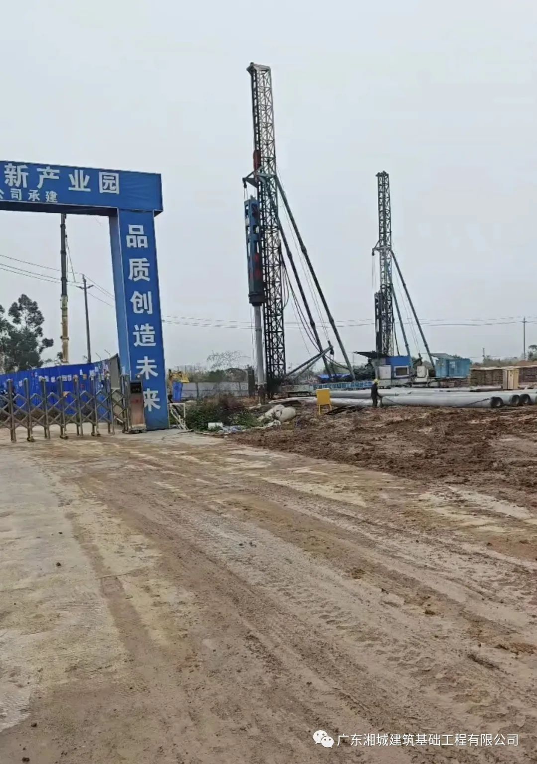 該項目為增資擴產(chǎn)項目,由廣東高義包裝科技股份公司投資建設(shè),主要從事數(shù)字化包裝設(shè)計與制造。項目計劃總投資8億元,用地85.04畝,項目樁基礎(chǔ)建設(shè)由我司投入1臺靜力壓樁機及1臺環(huán)保液壓錘進行PHC500預(yù)應(yīng)力管樁施工。